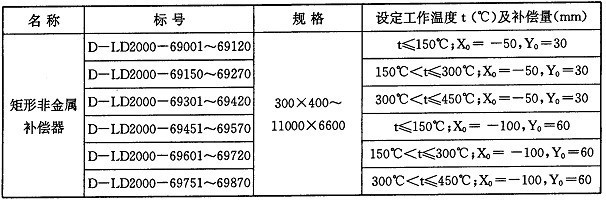 矩形非金屬補償器根據不同的工作溫度和補償量進行分類,編目如下:
