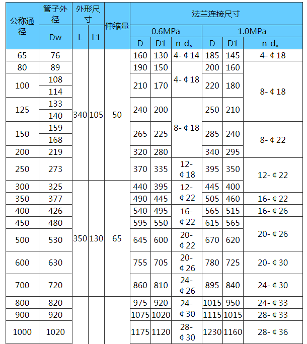 VSSJA-1型單法蘭限位伸縮接頭技術(shù)參數(shù)